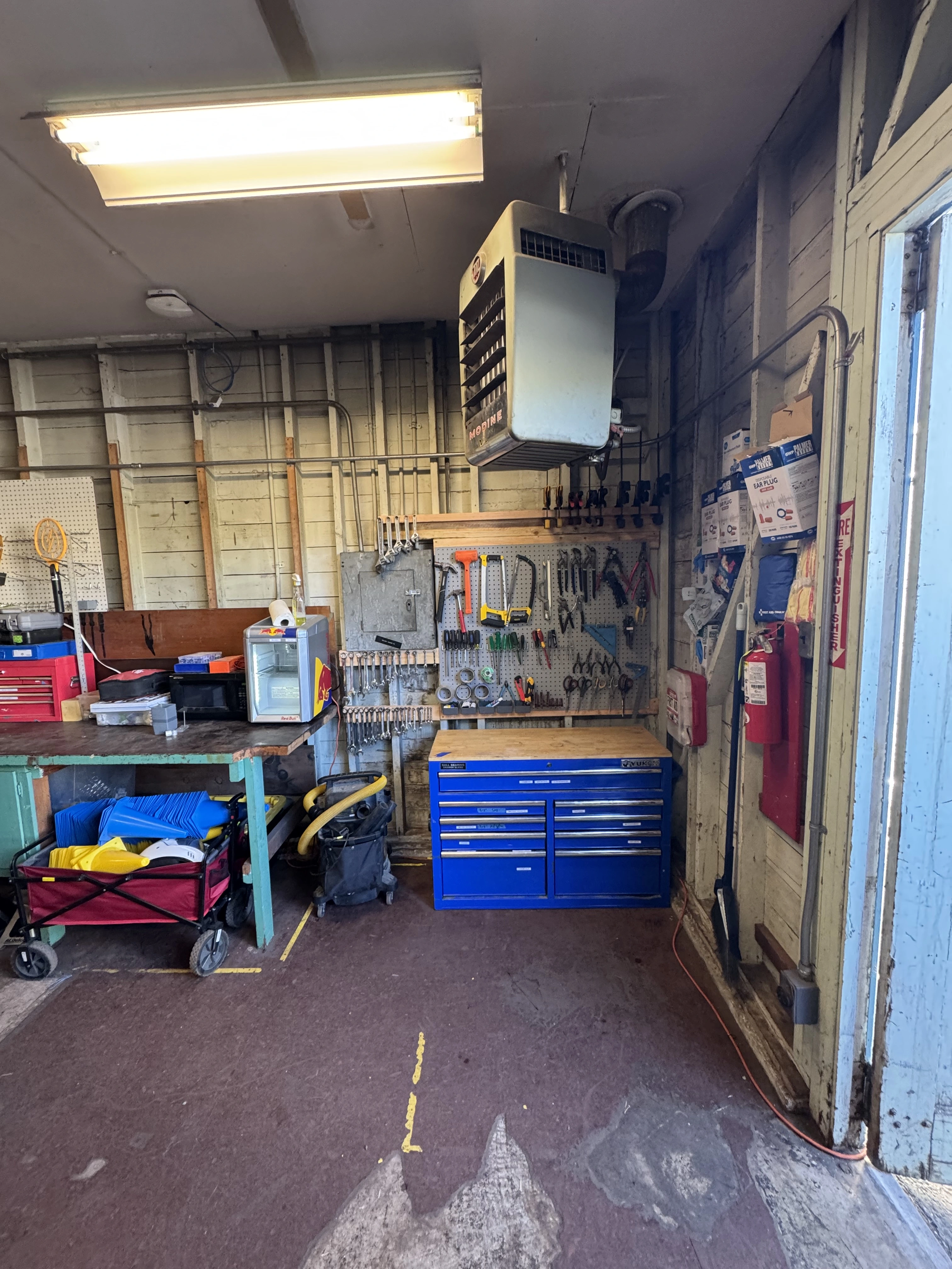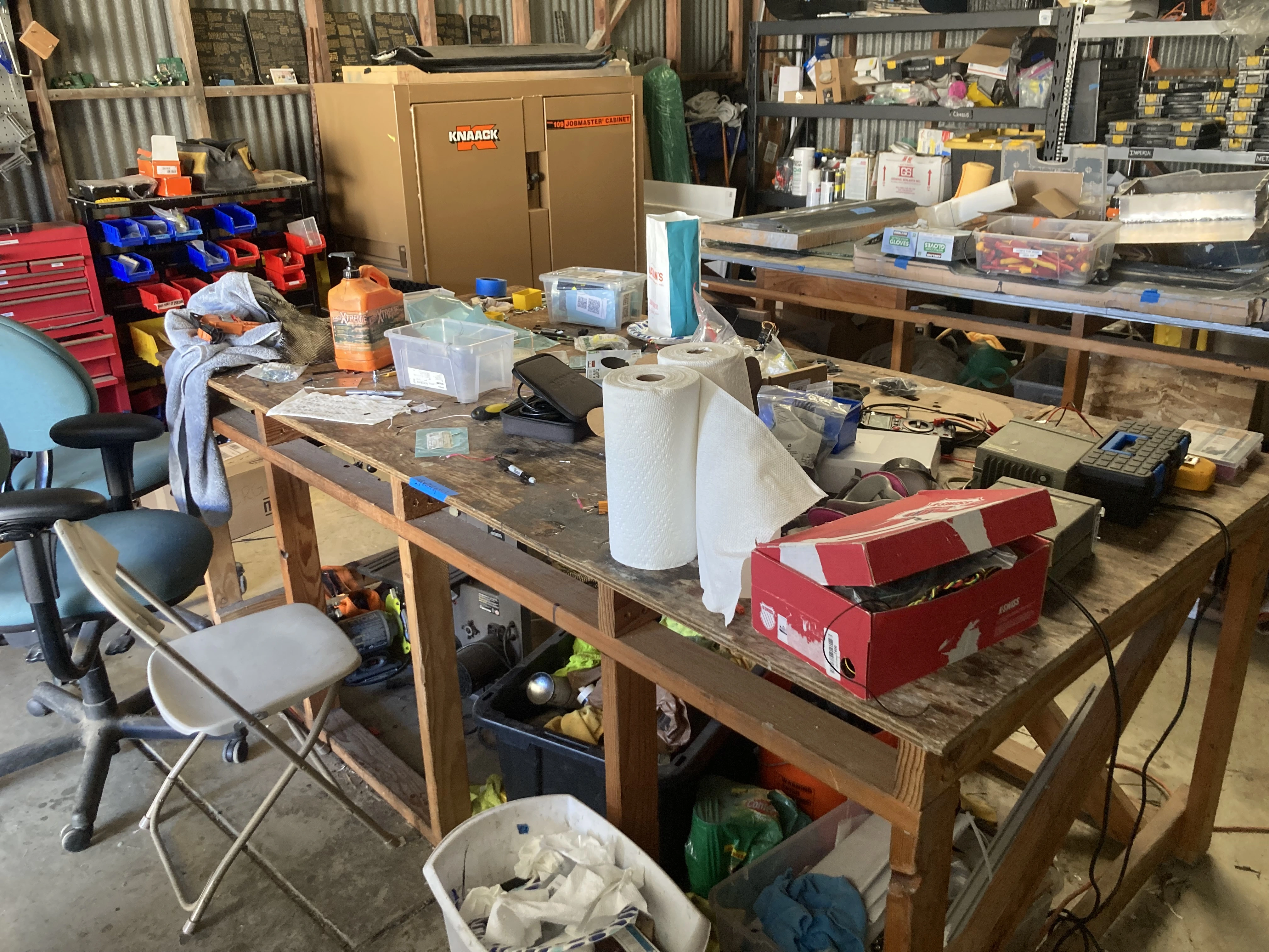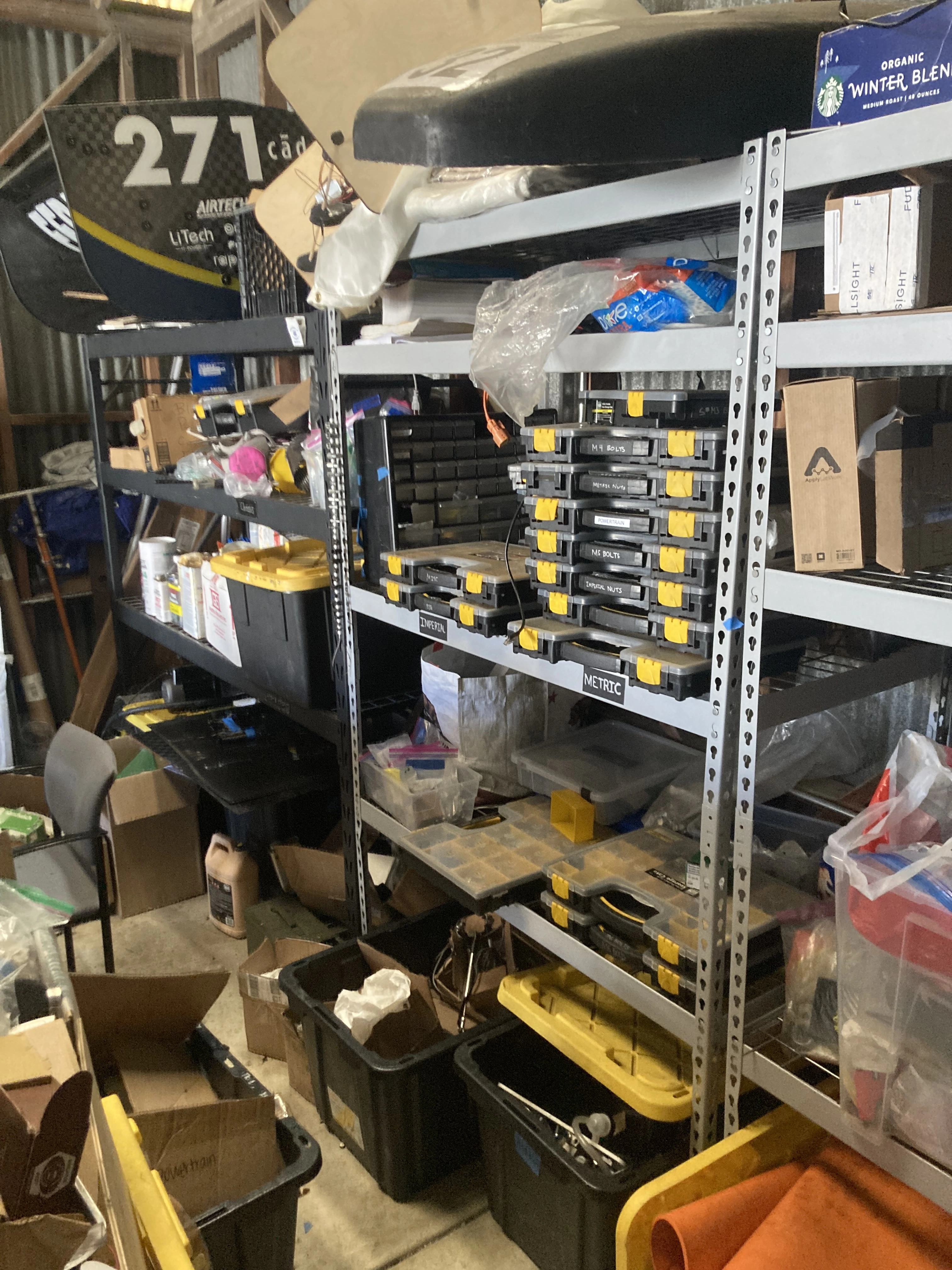 The original FEB workshop was in a run-down garage, with a lack of organization for all the parts containers, composite supplies, and tools.
