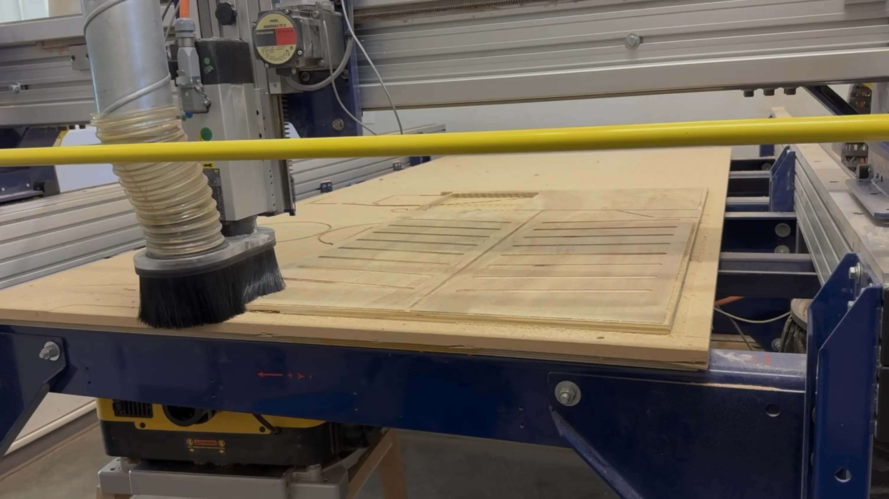 A big improvement that really helped reduce the fabrication time was having a large shopbot CNC router at Jacobs makerspace. For previous projects, all cuts had to be made with a circular saw. With the CNC, this allowed for more custom geometries and improved design joints for alignment.